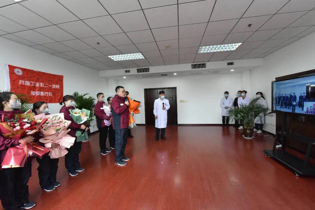 焦開河指出,面對(duì)突如其來的新冠肺炎疫情的嚴(yán)峻考驗(yàn),521醫(yī)院7名援鄂醫(yī)療隊(duì)隊(duì)員堅(jiān)決響應(yīng)習(xí)近平總書記和黨中央號(hào)召,肩負(fù)集團(tuán)公司黨組和全集團(tuán)23萬干部職工的重托,聞令而動(dòng)、挺身而出,奔赴抗擊疫情第一線。援鄂期間,杭博、郭苓、緱豪兵、楊嬌4位同志,充分發(fā)揮了共產(chǎn)黨員的先鋒模范作用,呂戈、侯永生、曹利娜3位同志火線入黨,不辱使命、不負(fù)重托,出色完成了任務(wù)。7位同志的辛勤付出,充分體現(xiàn)了“把一切獻(xiàn)給黨”的人民兵工精神,體現(xiàn)了大愛無疆的醫(yī)者仁心,體現(xiàn)了集團(tuán)公司大國頂梁柱的責(zé)任擔(dān)當(dāng),為黨旗爭(zhēng)了光,為集團(tuán)公司添了彩。全集團(tuán)廣大干部職工要學(xué)習(xí)他們的先進(jìn)事跡,為奪取疫情防控和實(shí)現(xiàn)全年目標(biāo)任務(wù)的“雙勝利”不懈奮斗!