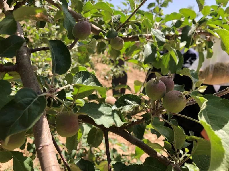 這是李建義在中國(guó)兵器工業(yè)集團(tuán)西安近代化學(xué)研究所和延安市安塞區(qū)、鎮(zhèn)、村多方幫扶下,種植的15畝蘋(píng)果園果樹(shù)首次掛果。