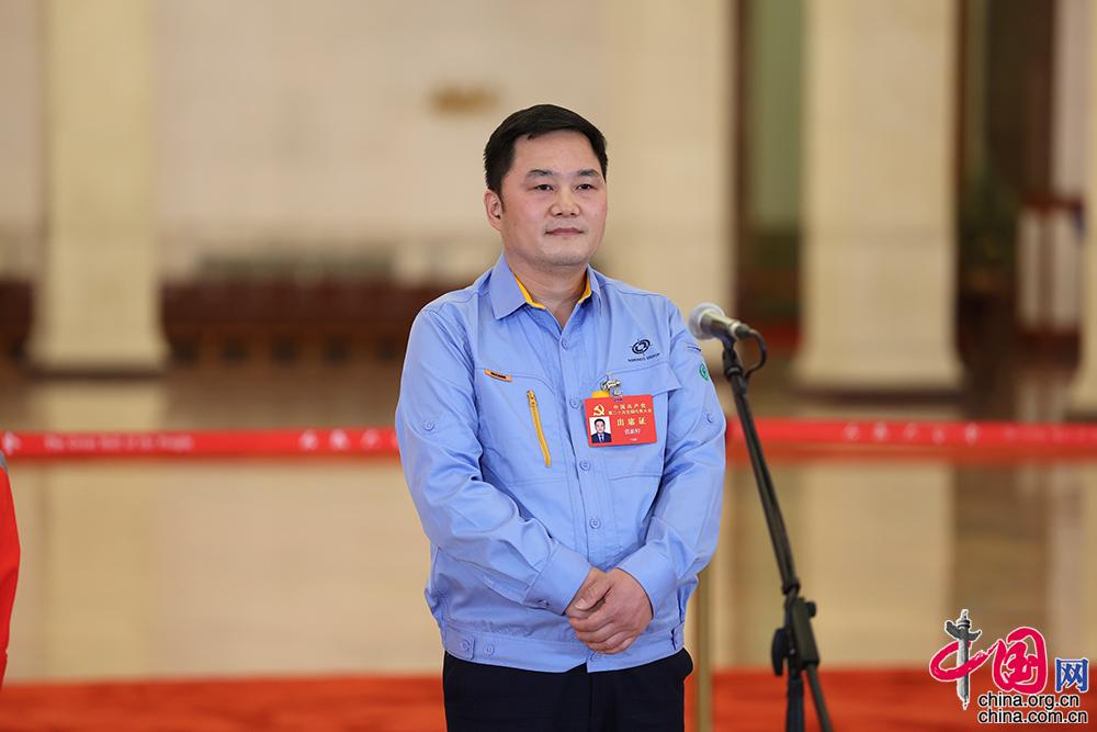 10月22日,二十大“黨代表通道”第二場采訪活動在人民大會堂舉辦。圖為中國兵器西北工業(yè)集團(tuán)研究院試制分廠鉗工高級技師張新停。中國網(wǎng)記者 董寧 攝