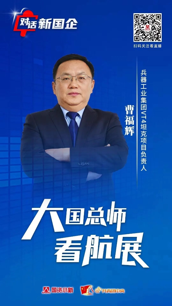 11月8日,國(guó)務(wù)院國(guó)資委新聞中心聯(lián)合共青團(tuán)中央宣傳部共同推出“對(duì)話新國(guó)企·大國(guó)總師看航展”系列訪談節(jié)目。中國(guó)兵器工業(yè)集團(tuán)一機(jī)集團(tuán)副總經(jīng)理、VT-4坦克項(xiàng)目負(fù)責(zé)人曹福輝作為訪談嘉賓,接受視頻連線采訪,介紹了兵器工業(yè)集團(tuán)有關(guān)參展情況,并就VT-4坦克的最新研發(fā)成果和地面作戰(zhàn)裝備體系解決方案等進(jìn)行了介紹。