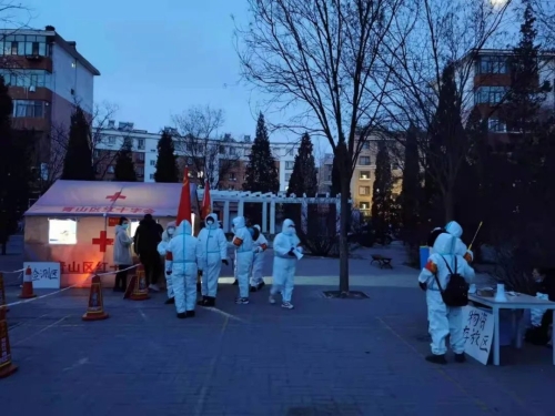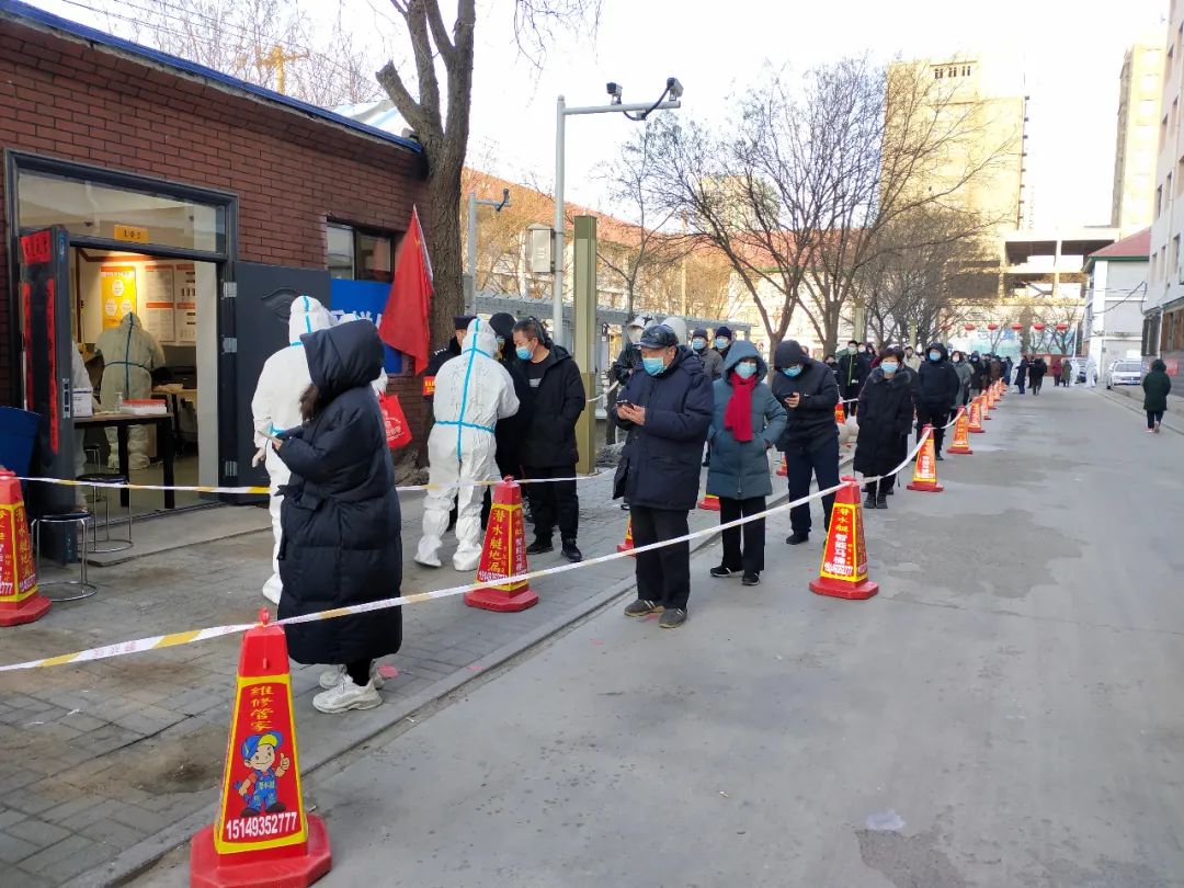 當(dāng)前,內(nèi)蒙古自治區(qū)疫情防控形勢(shì)依然嚴(yán)峻,包頭市中風(fēng)險(xiǎn)地區(qū)已達(dá)7個(gè)。面對(duì)疫情,中國(guó)兵器工業(yè)集團(tuán)有限公司駐包頭單位積極行動(dòng),支援當(dāng)?shù)匾咔榉揽兀仓踩谰€。 凌晨集結(jié),投身核酸檢測(cè)工作 來(lái)自一機(jī)集團(tuán)、北重集團(tuán)、材料院52所包頭事業(yè)部的共計(jì)500余名志愿者密切配合包頭市防疫部門、街道社區(qū)進(jìn)行全員核酸檢測(cè),同時(shí)做好信息登記、維護(hù)秩序、宣傳政策等工作,確保核酸檢測(cè)全覆蓋。2月20日凌晨,在零下20度的寒風(fēng)中,志愿者全部在支援地集結(jié)到位,做好核酸檢測(cè)前的相關(guān)準(zhǔn)備。 一機(jī)集團(tuán)黨員突擊隊(duì) 志愿者們搭建臨時(shí)帳篷,用圍擋封控家屬區(qū),配合醫(yī)護(hù)人員組織居民排隊(duì),有序進(jìn)行核酸檢測(cè)。檢測(cè)工作開(kāi)始后,志愿者們用溫暖的話語(yǔ)安撫居民們的情緒,引導(dǎo)居民有序入場(chǎng),檢測(cè)居民體溫,登記核對(duì)信息,轉(zhuǎn)運(yùn)檢測(cè)樣本。為了盡可能提高檢測(cè)工作效率,志愿者在各條核酸檢測(cè)通道指導(dǎo)群眾掃碼登記,一對(duì)一幫助老人、兒童等不便使用智能手機(jī)的群眾解決困難,使其能順利進(jìn)行核酸檢測(cè)。 逐戶上門,確保應(yīng)檢盡檢 為確保所支援地區(qū)完成全員核酸檢測(cè)工作,志愿者自愿組隊(duì),挨家挨戶上門通知,進(jìn)行人員核對(duì),對(duì)于處在隔離期的居民以及行動(dòng)不便的老人、兒童采取了入戶核酸檢測(cè)。