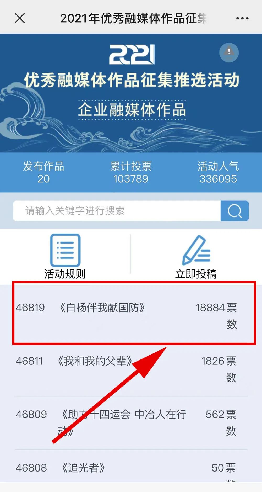 近日,由“文化強(qiáng)國(guó)”光明日?qǐng)?bào)協(xié)同推廣平臺(tái)、光明網(wǎng)、北京師范大學(xué)新媒體傳播研究中心和光明天翼5G融媒實(shí)驗(yàn)室共同主辦的“2021年優(yōu)秀融媒體作品征集推選活動(dòng)”開啟線上投票環(huán)節(jié),經(jīng)過(guò)專家委員會(huì)評(píng)審,中國(guó)兵器工業(yè)集團(tuán)北重集團(tuán)《白楊伴我獻(xiàn)國(guó)防》音樂(lè)MV入選活動(dòng)前二十名,并進(jìn)入網(wǎng)絡(luò)投票環(huán)節(jié)。 《白楊伴我獻(xiàn)國(guó)防》 楊樹參天 高聳云端的是兵工人 “履行好強(qiáng)軍首責(zé)”的壯志凌云! 深植北疆 傾獻(xiàn)沃土的是北重人 “推動(dòng)高質(zhì)量發(fā)展”的壯志豪情! 白楊樹伴著我們茁壯成長(zhǎng) 見證著我們獻(xiàn)身國(guó)防! 投票方式 1.掃描下方二維碼,進(jìn)入初始界面,點(diǎn)擊“企業(yè)融媒體作品征集”,進(jìn)入投票界面點(diǎn)擊《白楊伴我獻(xiàn)國(guó)防》,點(diǎn)擊“投TA一票”; 2. 每人每日可投10票,直至提示投票達(dá)到上限即可; 3.投票時(shí)間:2022年3月17日09:00-2022年4月2日17:00。 來(lái)源/光明網(wǎng)、北重集團(tuán) |