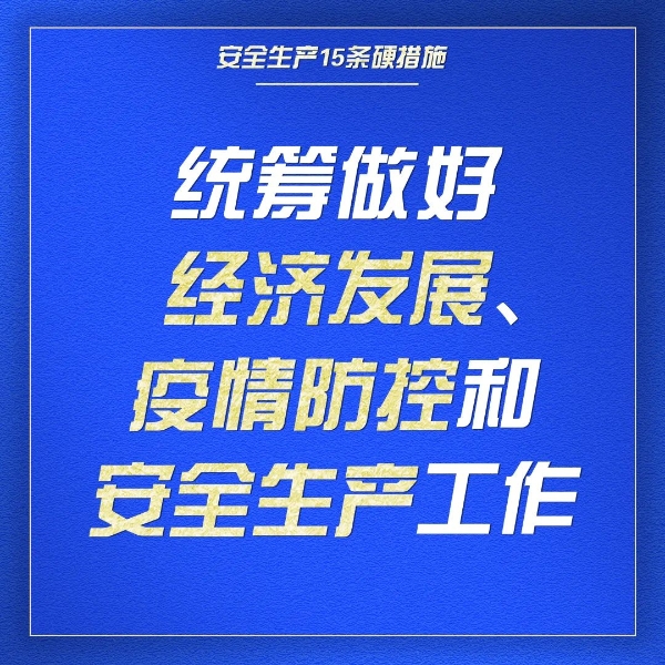 為認真貫徹落實習近平總書記關(guān)于安全生產(chǎn)重要指示精神和黨中央、國務院決策部署,近日,國務院安委會梳理相關(guān)法律法規(guī)已有規(guī)定、以往管用舉措和近年來針對新情況采取的有效措施,制定了進一步強化安全生產(chǎn)責任落實、堅決防范遏制重特大事故的十五條硬措施,部署發(fā)動各方面力量全力抓好安全防范工作,為黨的二十大勝利召開創(chuàng)造良好安全環(huán)境。